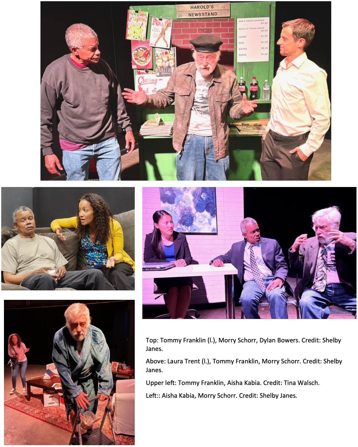 At the heart of the play are two incorrigible, crusty, lovable curmudgeons, Harold and Albie. Harold has successfully run on a newsstand in New York for 30 years. Post COVID, his rent is hiked to unsustainable levels – and now he might lose his beloved business. Harold is a 70 year old conservative Black man, a veteran Marine, a lifelong lover of New York City and baseball. His niece, played with fearless realism by Aisha Kabia, tries to help him sell his somewhat decrepit house, get a cash settlement from the newsstand landlord, and move to Florida with her. But is Harold really ready to let go of his life?