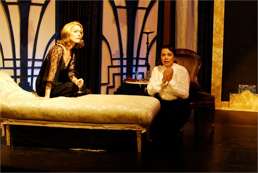 All Photos: Odalys Nanin (as Mercedes) and Angela Nicholas (as Greta) in “Garbo’s Cuban Lover” at Macha Theatre. Photo credit: Kelly Mullis.