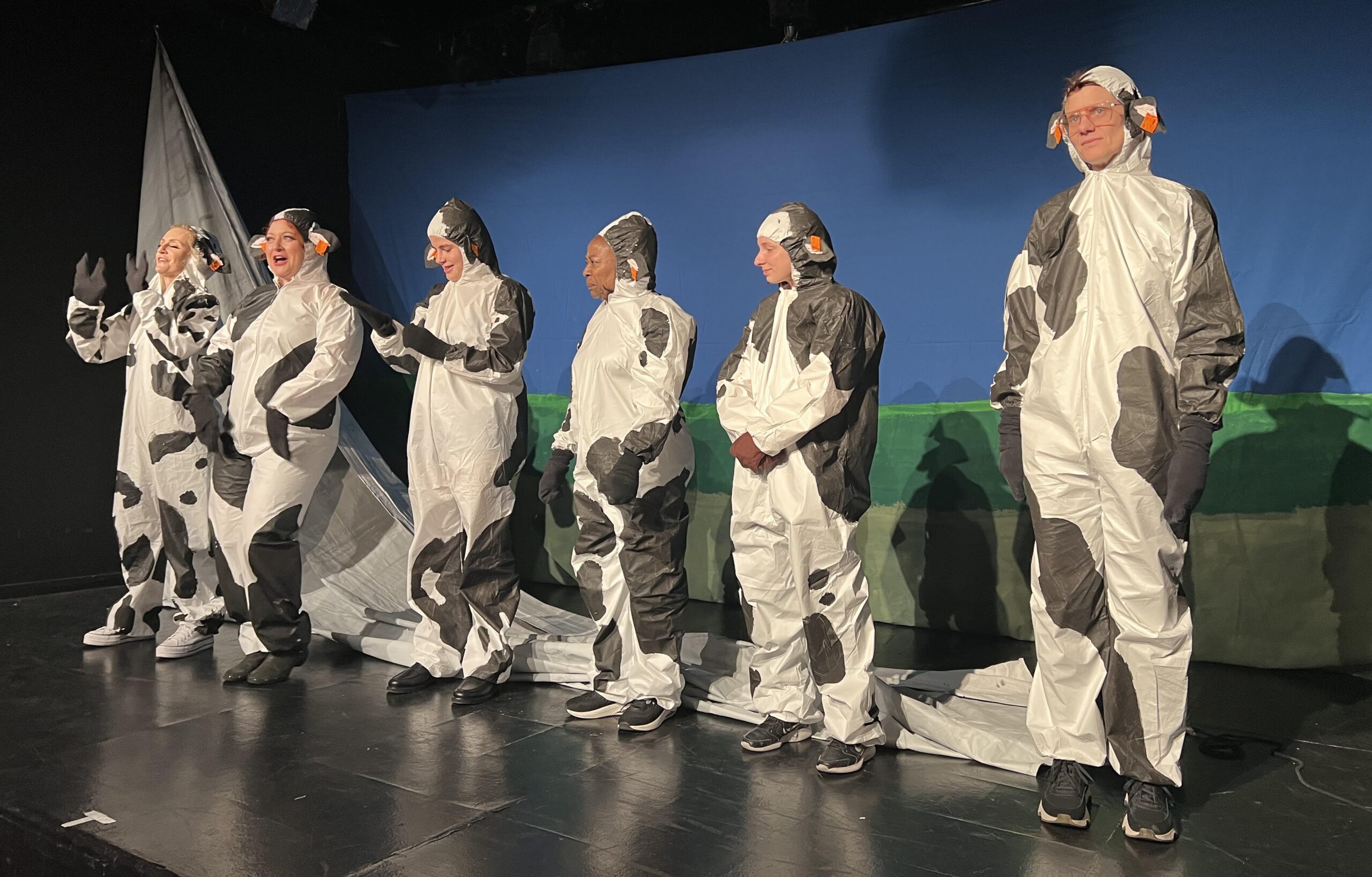 Betsy (Jennifer DeRosa), and Patty ( Jules Bruff) are at the end of the line. There are six cows standing in front of them. They are all waiting for something wonderful to happen. When ‘Next” is called, they are excited and curios at the same time, about something new – yet unknown. After a moment we hear the sound of shudder. And silence follows. All the seats were taken at tonight’s performance, and everyone listened intently.