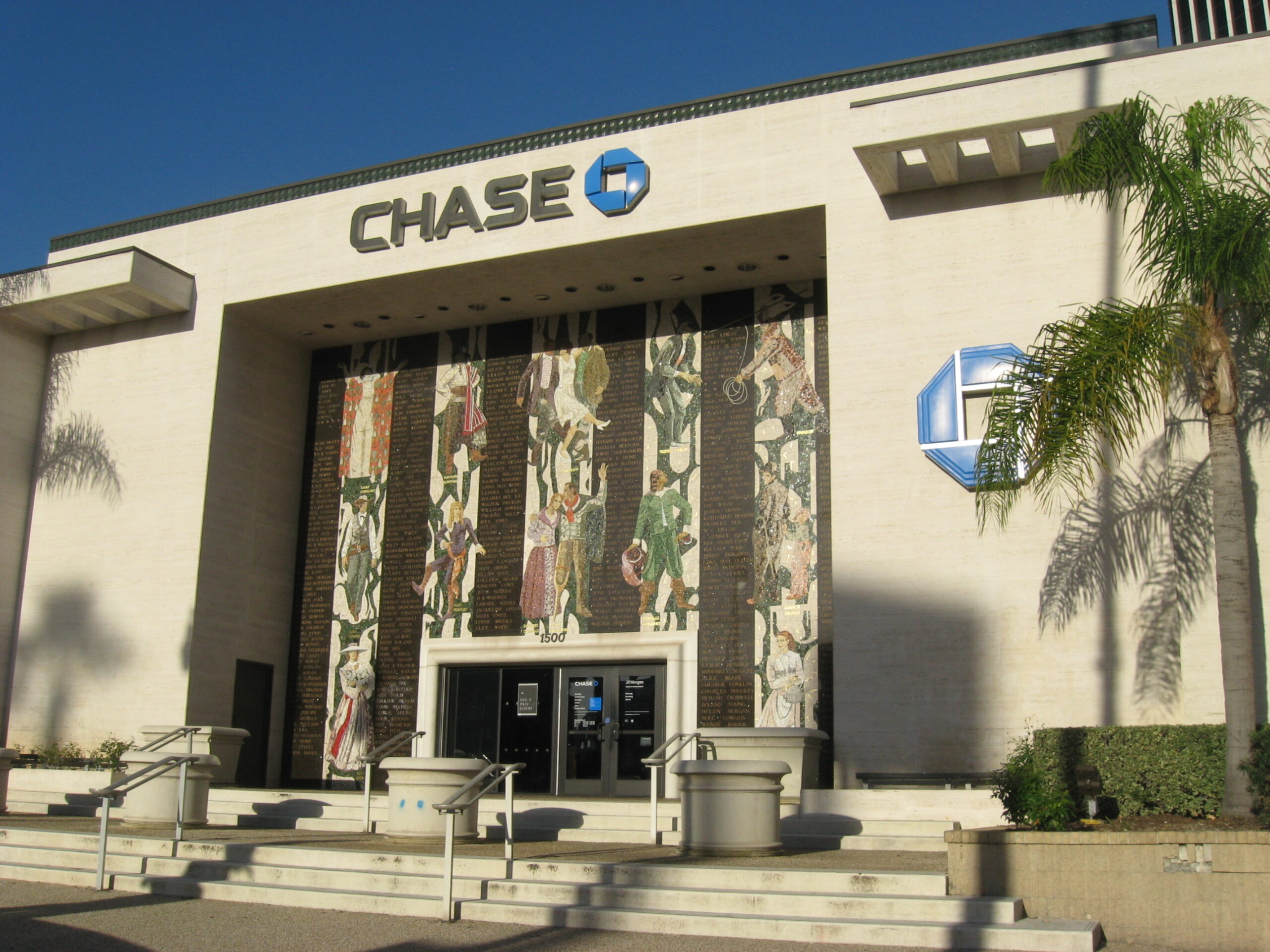 Unusual mosaics, murals and stained glass created by noted California artist Millard Sheets depict Hollywood personalities.