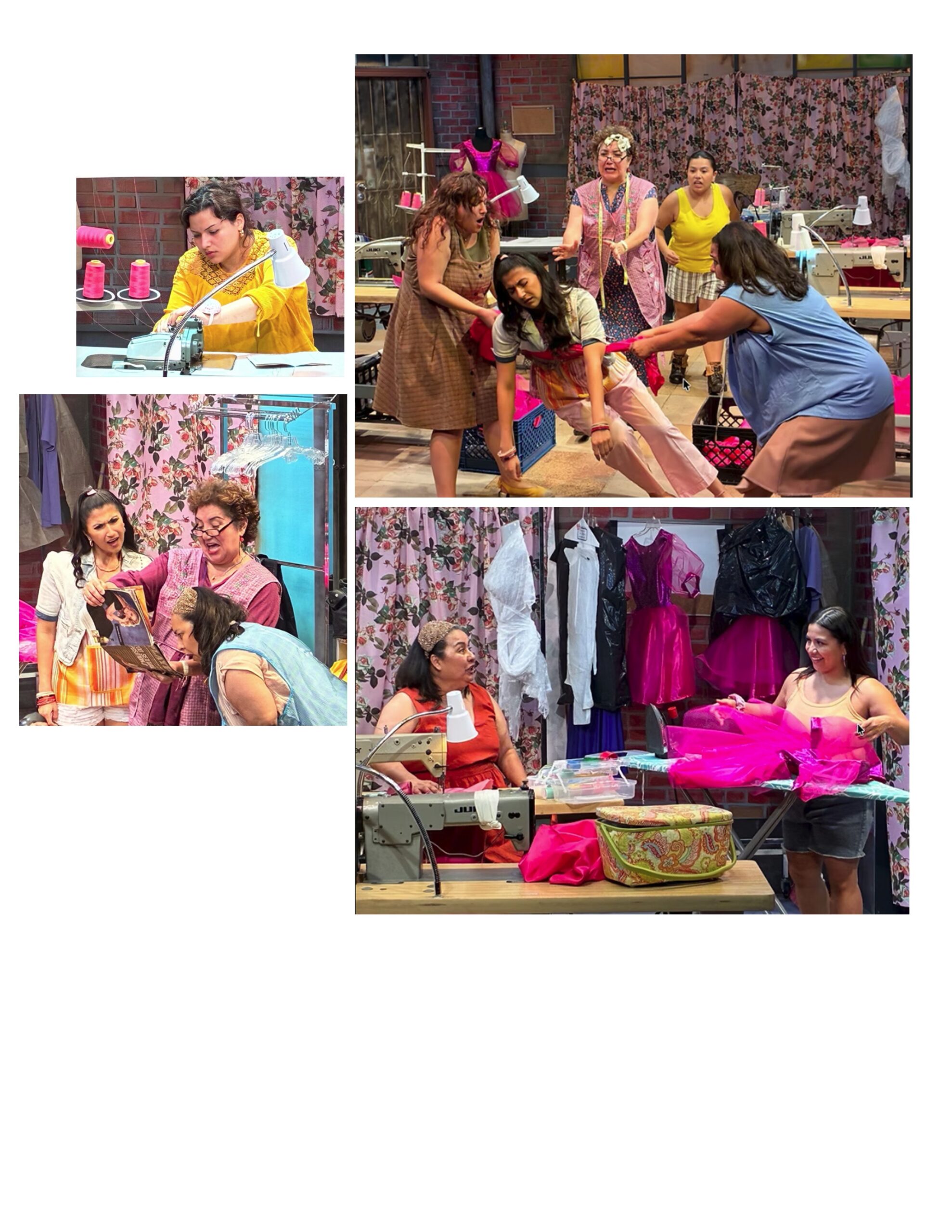 I found the simple, very real, and down-to-earth comedy in this show to be wild, astonishingly funny, and entertaining. The colorful set design of the seamstress factory created by César Rentana-Holguín and built by Jeremiah Ocañas gets our attention and expectancy that something wonderful will happen here, right from entering the theatre space.