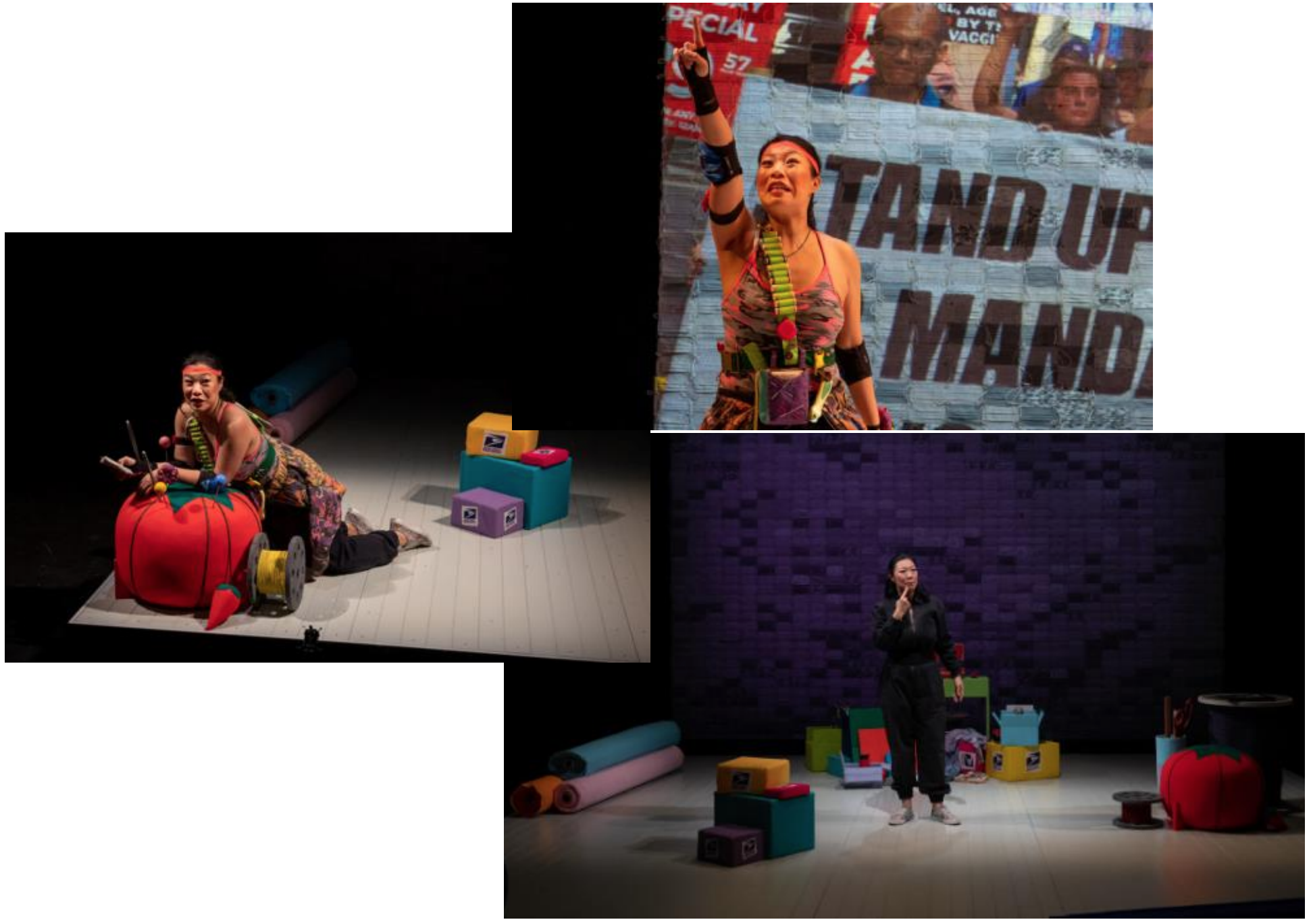 The staging of Sweatshop Overlord is active and dynamic. The set; colorful and smart. Every piece, including her props and costumes, is placed deliberately with wonderful prop reveals and payoffs feeding the production at every turn. the lighting design supports the fast paced script and delivery of this wunderkind of a performer.