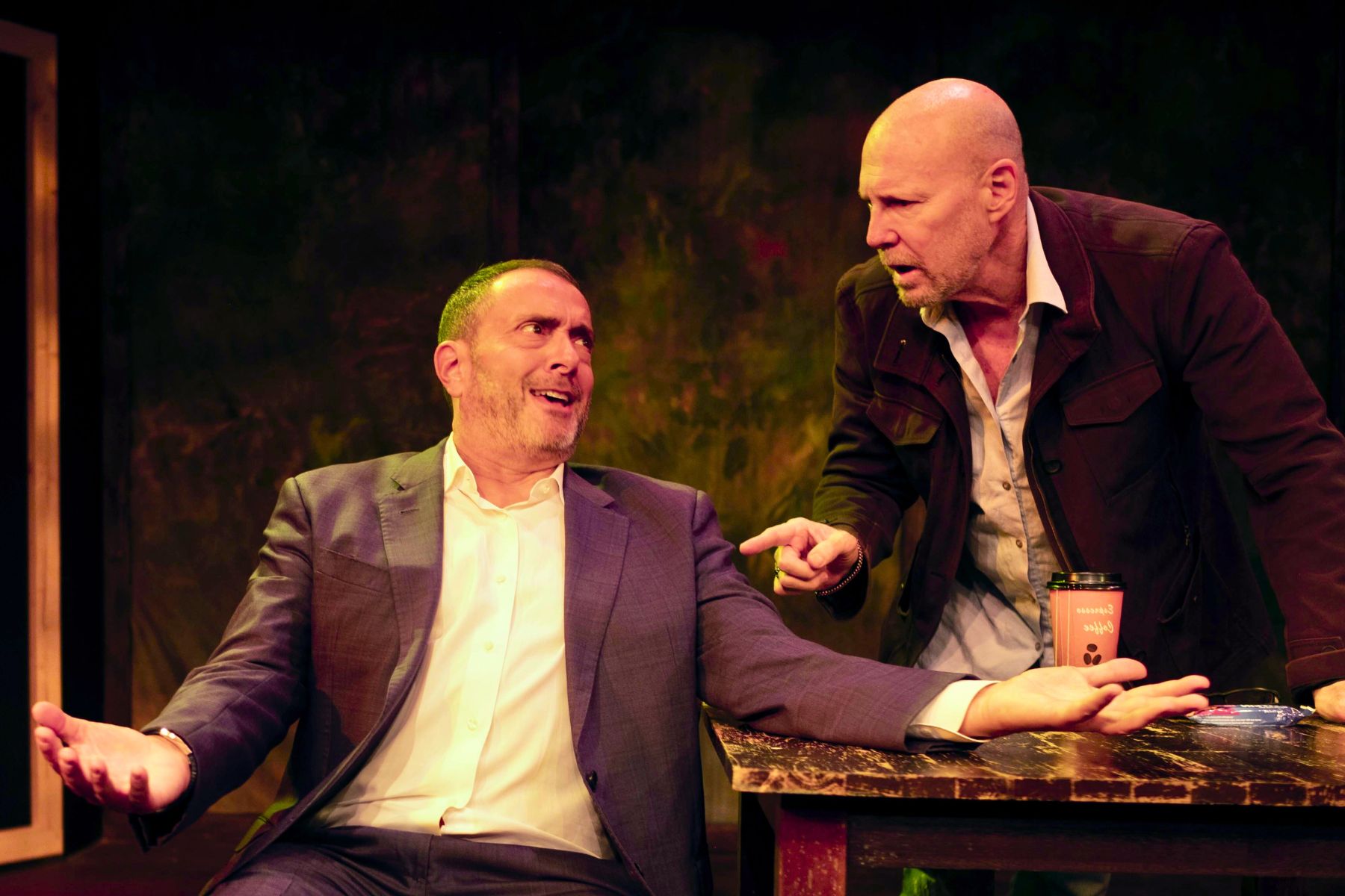 Life is full of surprises. What can spring from the journey of two friends, who get together for coffee after six years of being absent from each other’s life, is in all sincerity a great indication that time has not existed for them. JEFF played by Jeff LeBeau, and DAN played by Peter Zizzo, went over the past six years of their lives, touching upon the experiences with their families and changes that occurred, their feelings about relationships, politics, and life in general. From the very first moment their conversation started, we can clearly see the characters they embodied, and the precise actions and reactions which reveal furthermore the precision this play has been entrusted with. Every subject they talked about had a lot of momentous and emotional moments.